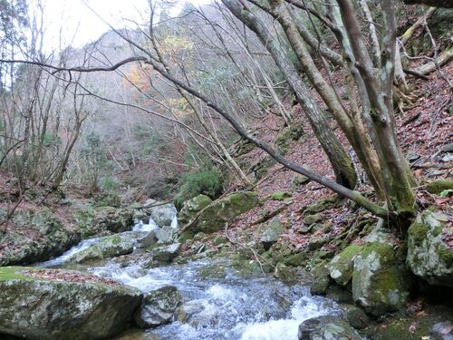第3インクラインへの渡河地点から上流を見渡すが軌道の跡を見いだすことが出来なかった。分からない。第2インクラインへ続く道はどこにあるのか。しかし、いざとなれば最終手段が残されている。それは 川沿いに遡ったのち直接上部軌道を目指す!そうすれば…