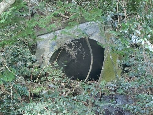 崖の中腹にぽっかりと開いた坑門。これが気田林鉄唯一の廃隧道である森山隧道だ。これ以外の隧道は全て車道に転用されている。 川からの高さはこんな感じ。ちなみに隧道の手前の路盤は崩落がめんどうくさかったため、河原からしか見ていない。更に、この写真…