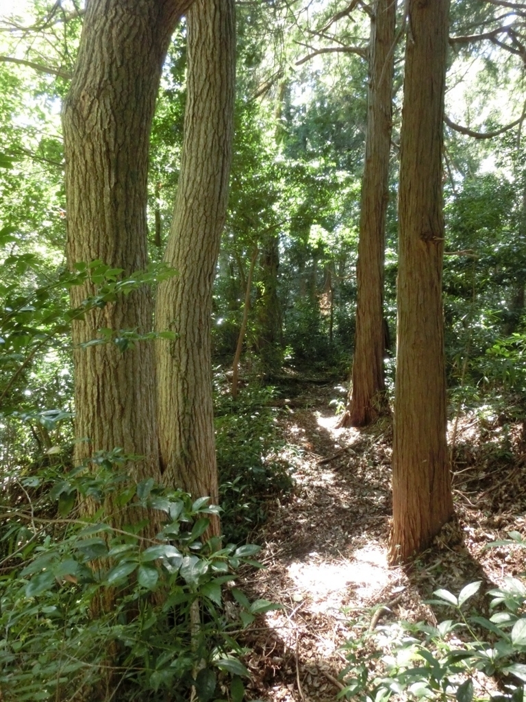 斜面をよじ登り先ほどの尾根へ戻り、そのまま尾根道をたどりささやかな峠を越える。