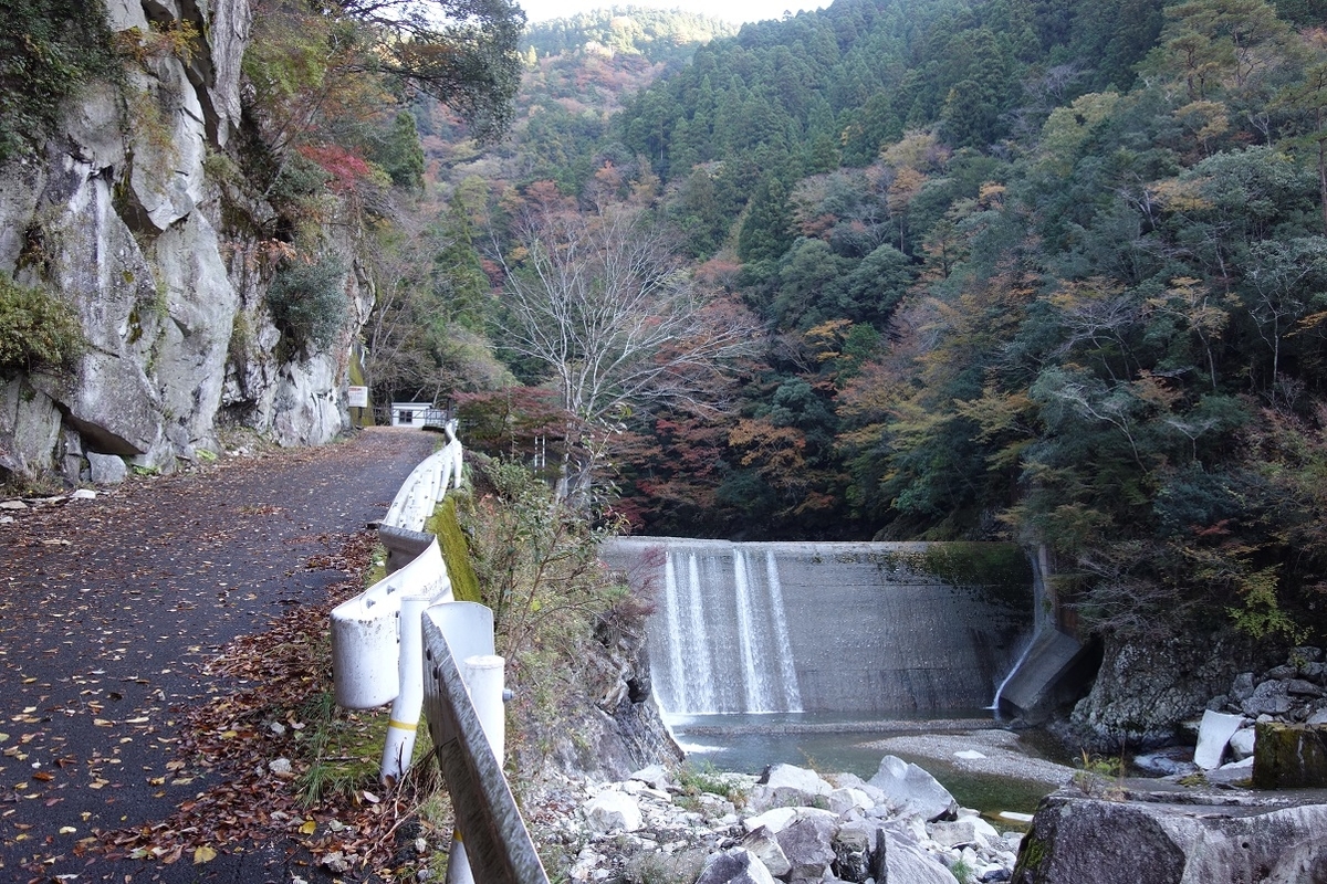 ここは奈良県吉野郡十津川村、芦廼瀬川(あしのせがわ)の上流。写っているのは十津川第一発電所へ水を送る小川取水堰だ。この日の朝一に林用軌道の探索をするはずだったが、そこに通じる林道が工事のためにガチで封鎖されていたためやむなく中止。予備のネタとして調べておいた物件を見にきたのだ。写真の右下にチラリと写っているそれは
