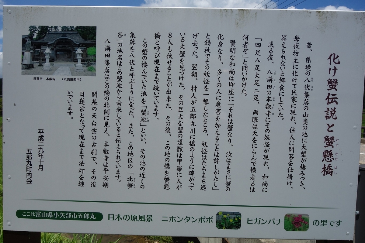 要するにスフィンクスごっこをしていた化け蟹が和尚の一撃をくらい、橋になって息絶えたという伝説だ。詳しいことは案内板を見てほしい。