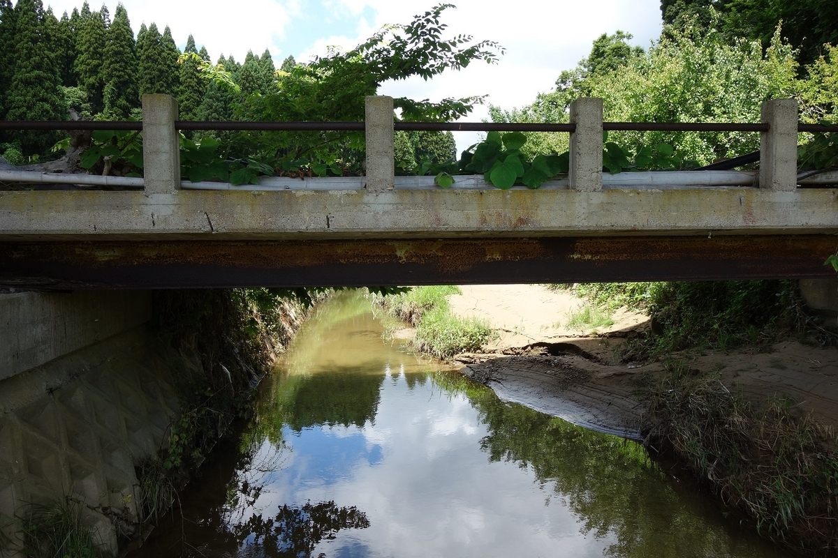 橋の下側のチェックをしていない。もしかしたら銘板が・・・と、水に足を入れようとした時、拳より一回り大きい沢蟹が深みへと消えていったのが印象的だった。はたして・・・