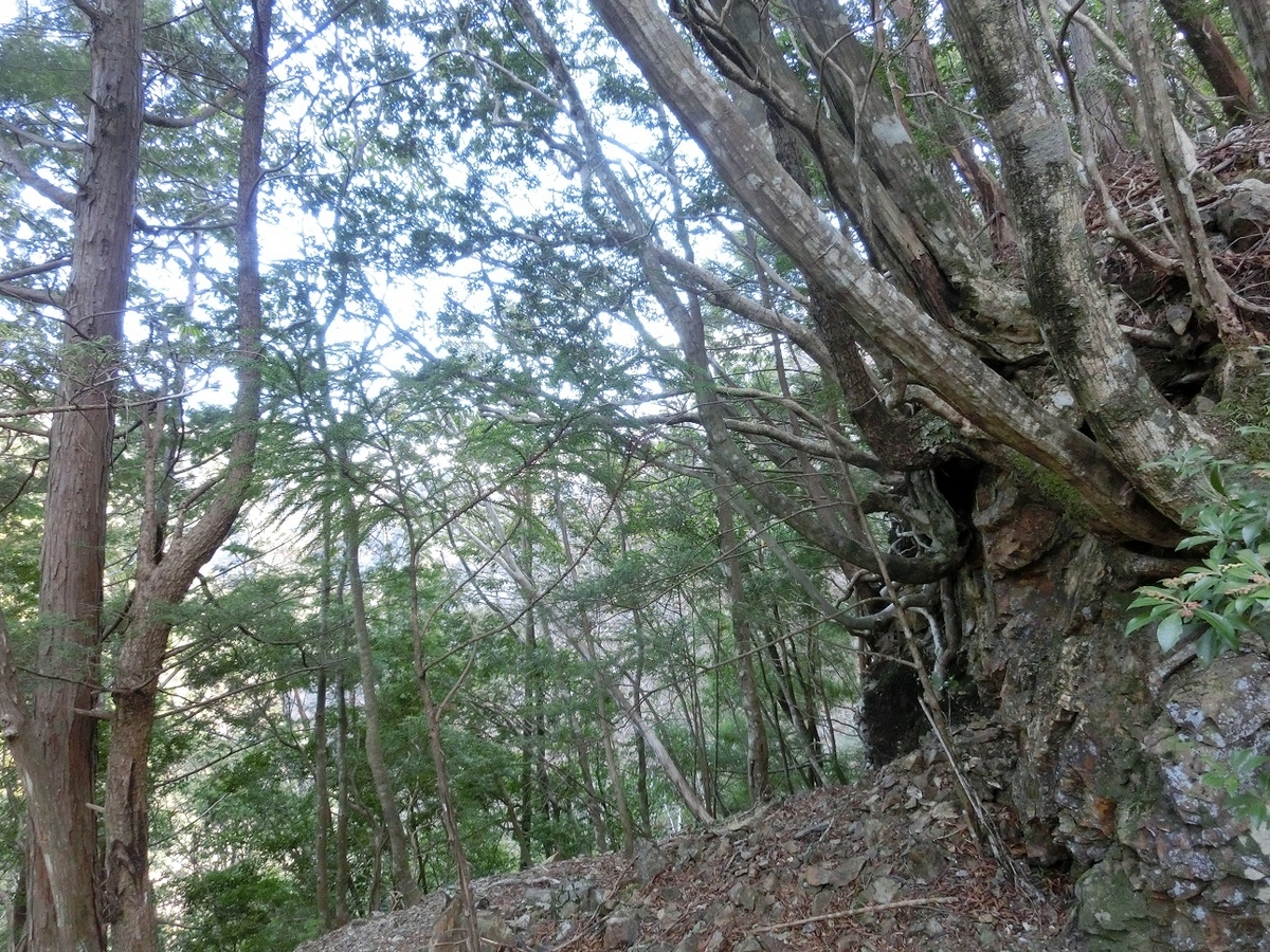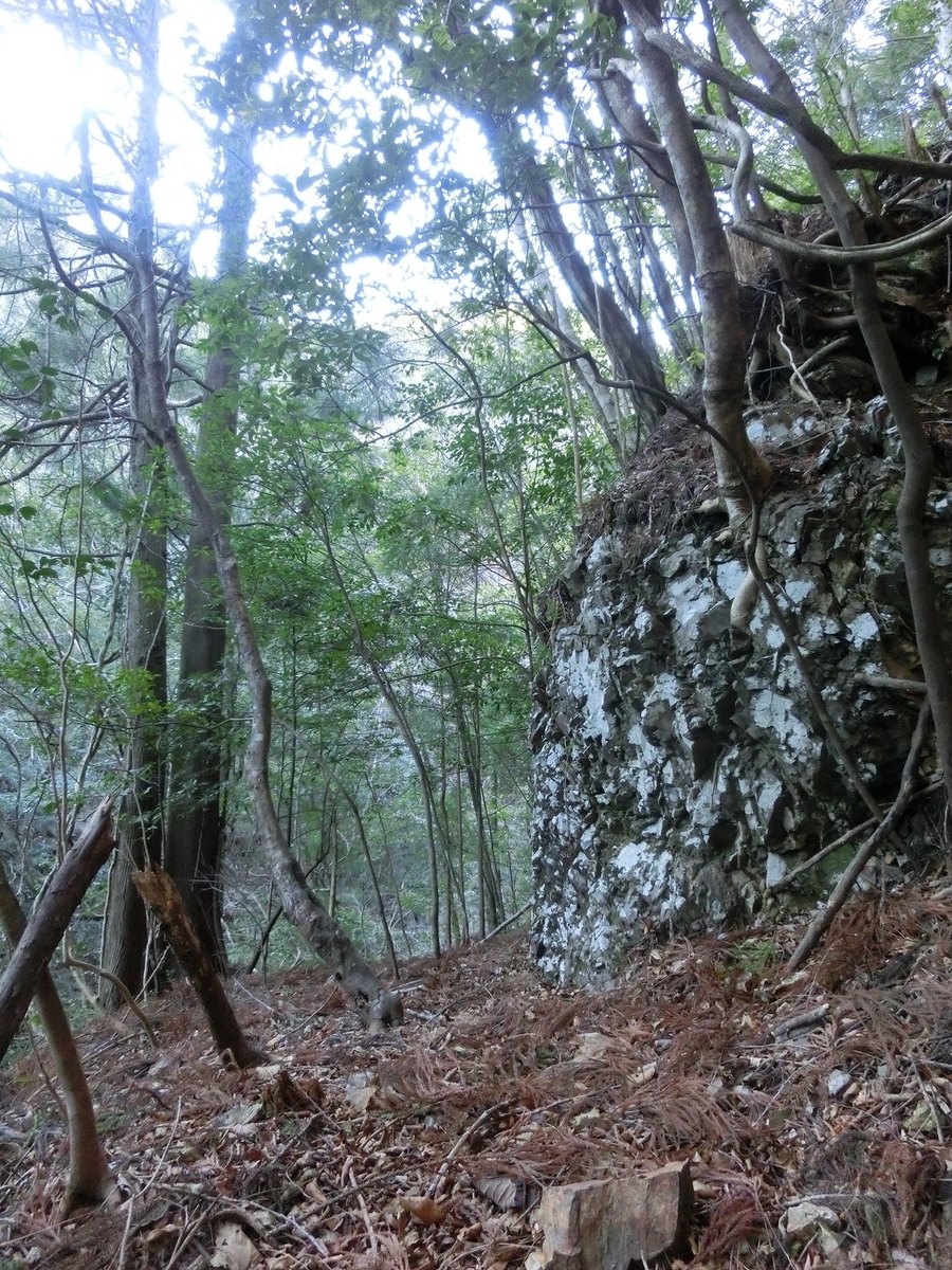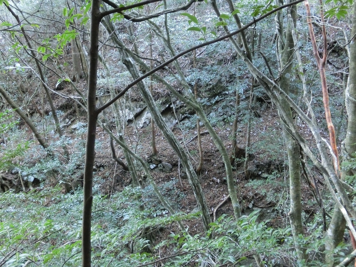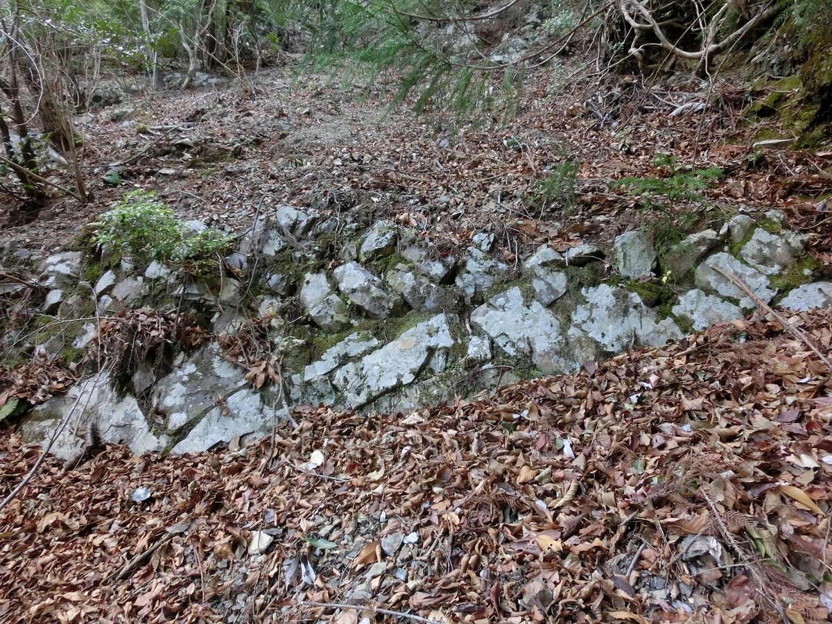 石垣がわずかに残っている。そのおかげでここが道だったことを確信できる。