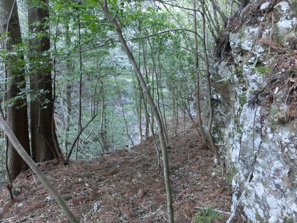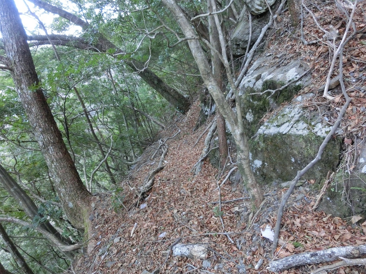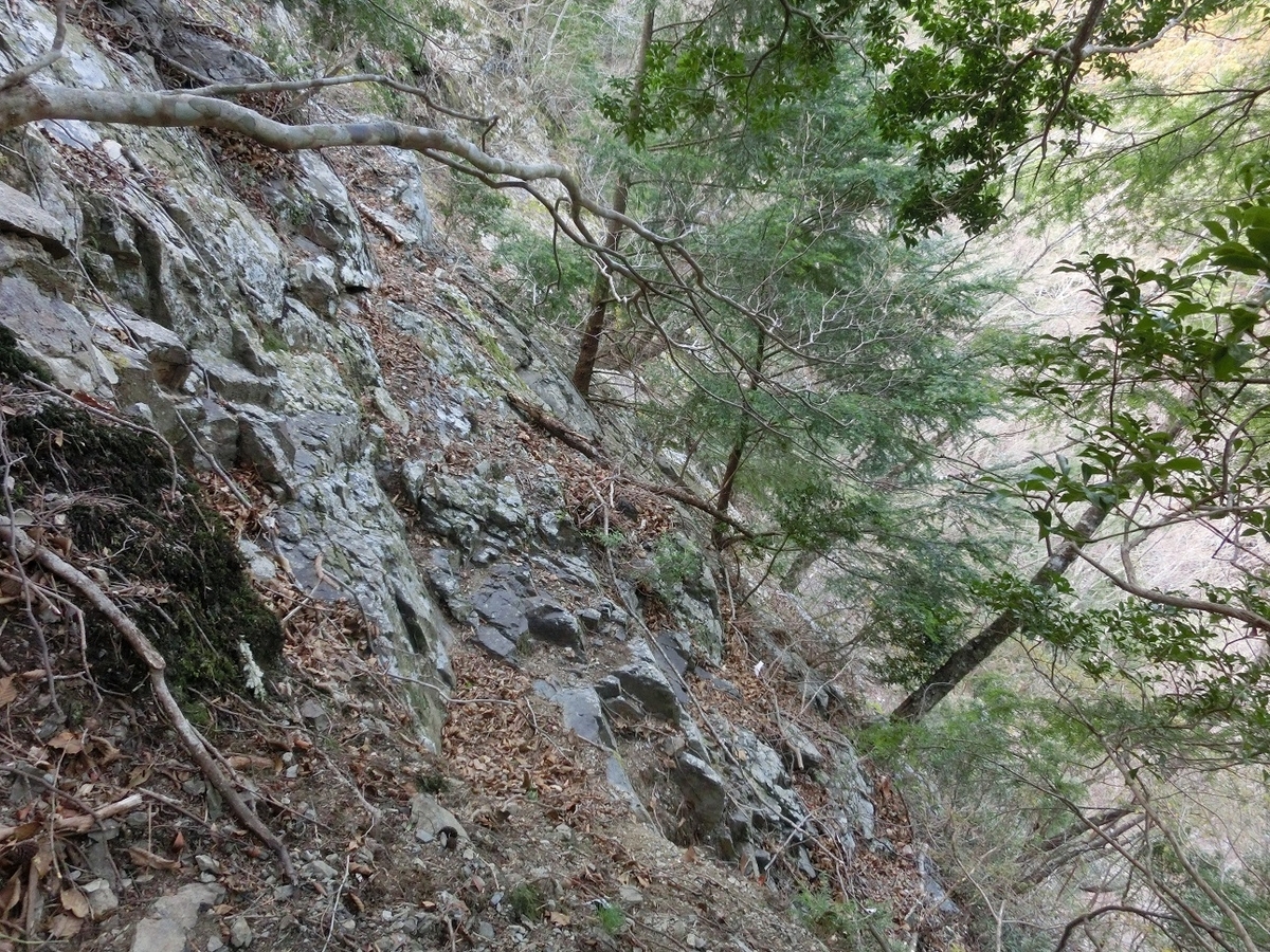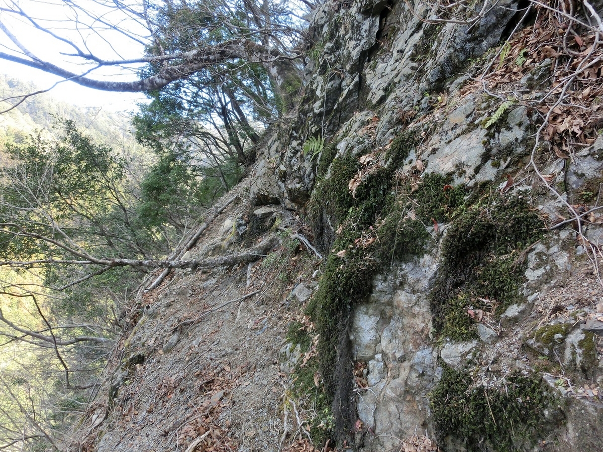 岩壁を削って造られたわずかな平場を慎重に進む。ここ怖かった。怖かった。