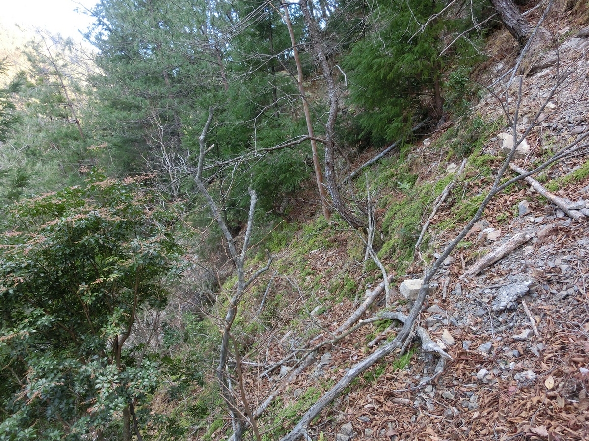 路盤は復活しないが掴まることが出来る木が増えた。おかげで安心感がちがう。でも道の跡というには崩落がひどくて険しすぎるが。