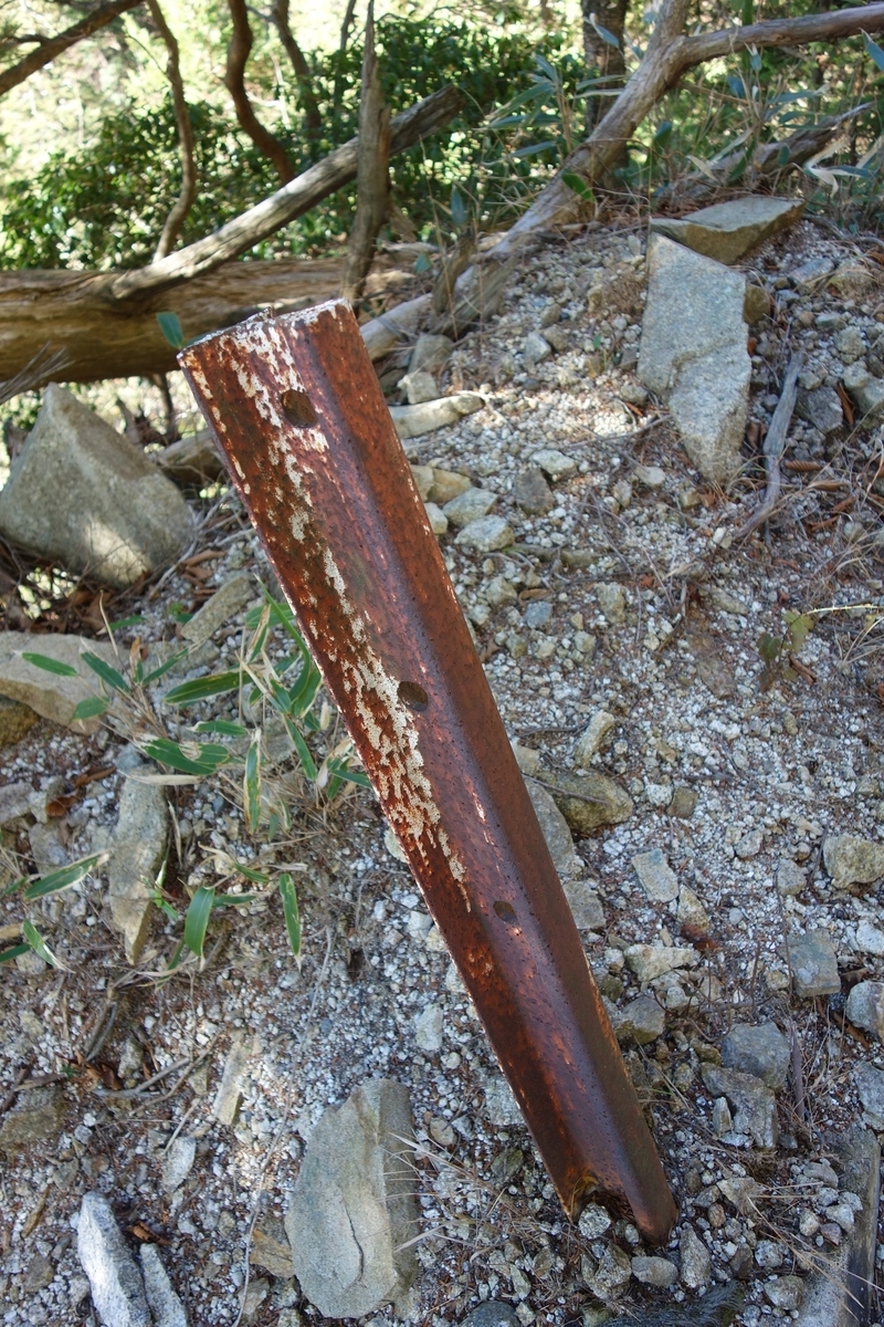 そのまま尾根を林道方面に進む。地図で調べていたときは軌道の一部が尾根に入り込んでいたのかもと推測していたが、